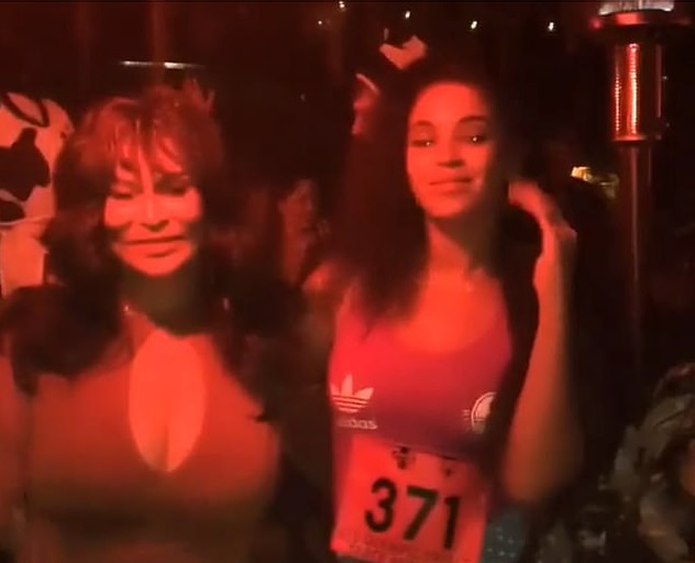 Beyonce, 37, dressed as 1980s Olympic sprinter Florence Griffith Joyner in a pink bodysuit beamed a big smile as she bopped to the music alongside her mom.