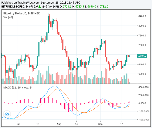 Over the past week, Bitcoin has demonstrated decent momentum and gradual increase in volume, rising from the lower end of $6,000 to $6,700. But, in comparison to other major cryptocurrencies like Ethereum and Ripple that recorded monstrous gains against the US dollar, the short-term rally of Bitcoin has been lackluster.