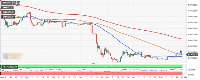 Bitcoin (BTC) broke above $4,000 only to crash spectacularly under $3,800 a few hours later. BTC/USD is changing hands at $3,779 at the time of writing, down 10% from the recent peak of $4,187. The inability to settle above critical resistance area after a breakthrough and develop a sustainable upside momentum bodes ill for Bitcoin bull, at least in the short run.