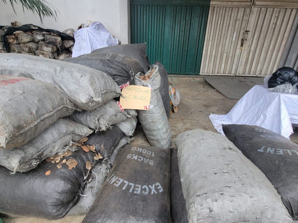 Among the intercepted items were: 18 Tippmann semi-automatic calibre paintball markers and 32 empty tank cylinders (₦18.3m DPV), 20 ballistic helmets (₦2m DPV), 75 bags of pangolin scales weighing 3,765kg (₦772.3m DPV).