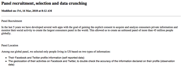 The company’s web site currently claims it has more than 10 million opted-in panelists, but the cached March 19 version said it had “an unbiased panel of more than 45 million people globally.” (Click the images in this story to make them bigger.)