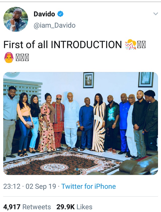 The music star and the DMW Boss shared a photo of his introduction ceremony via his twitter page in the early hours of Tuesday, September 2, 2019. Even though he didn’t say much in the caption, one thing is for sure…there is a wedding ceremony to plan for a boy who has worked so hard to inspire this generation.