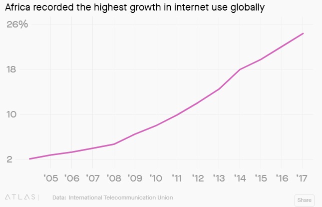 With internet penetration rates on the continent estimated at an average of 24%, it remains the only continent where over half the total population is without internet access. Yet, that stat represents some significant improvement given internet connections stood at 2.1% in 2005. In fact, Africa recorded the highest growth in internet use globally between 2005 and 2018, resulting in a significant global internet usage milestone.