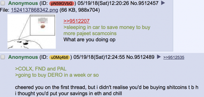 The Canadian man, posting under the handle “Livinginmycar”, shared his sleeping arrangements on 4chan’s biz message board, where crypto traders assemble to shitpost and share portfolios. Some commenters were supportive of his cause, while others were less sympathetic, one writing: “How fucking retarded are you brainlet, when you think that crypto will make you rich?…Money was made and you missed the train. Good luck waking up with 30 and being broke.” OP (i.e the original poster who started the thread) remains undaunted however, explaining how he balks at paying $800 per month in rent because “that money belongs in my crypto stack”.