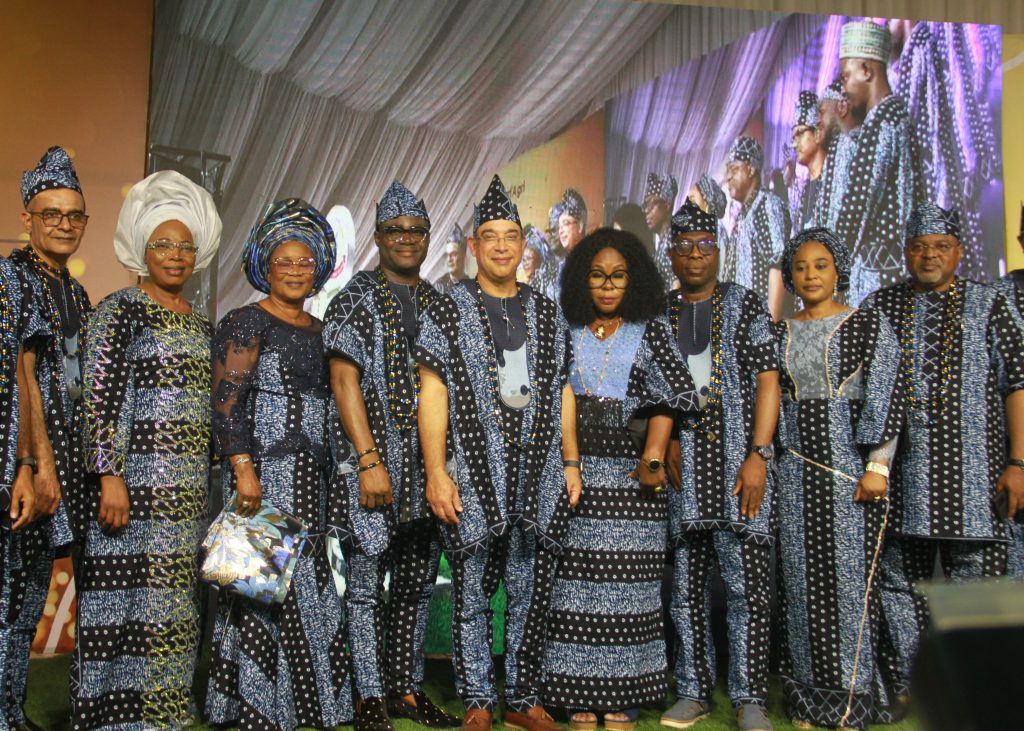 Bolaji Anifowose, Vice-President, Commercial, Olam Agri, and Nitin Mehta, MD, Wheat Milling Business, Olam Agri (middle), surrounded by another set of Crown Flour Mill (CFM) top distributors during the event.