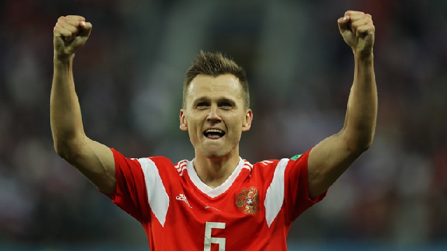 Aleksandr Golovin’s cross was punched out by Egyptian keeper Mohamed El-Shenawy, only as far as Roman Zobnin whose low drive was heading wide until Ahmed Fathi’s outstretched leg turned the ball into his own net.