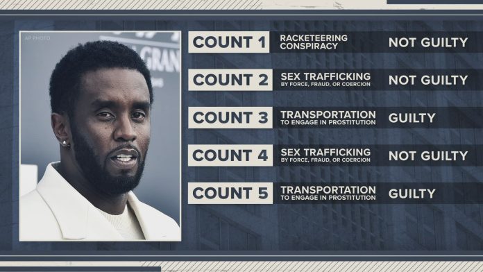 Combs, surrounded by his family and legal team, collapsed into prayer upon hearing the mixed outcome. Outside the courthouse, some supporters chanted his name, while survivor advocates decried the partial acquittal as “a failure to fully hold him accountable.”