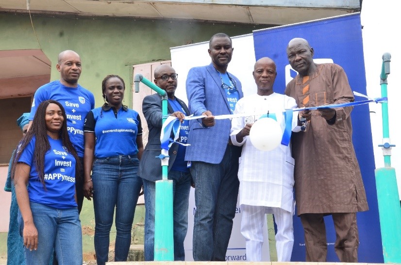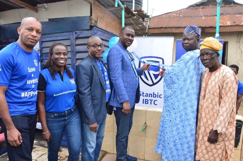 Staffs of the Stanbic IBTC during the commissioning of the borehole at Akilo-Ogba