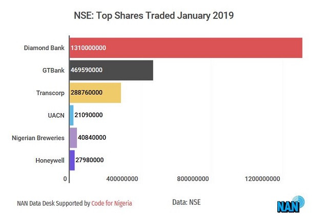 Diamond Bank emerged the most sought equity during the period in volume terms, with an exchange of 1.31 billion shares worth N2.72 billion in 3,918 deals.