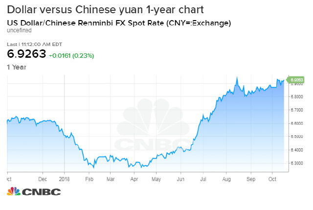 The yuan has edged near 6.93 to the U.S. dollar, a level where it also was trading in August. The yuan, also known as the renminbi, has moved markedly lower since June, when trade tensions started to flare.