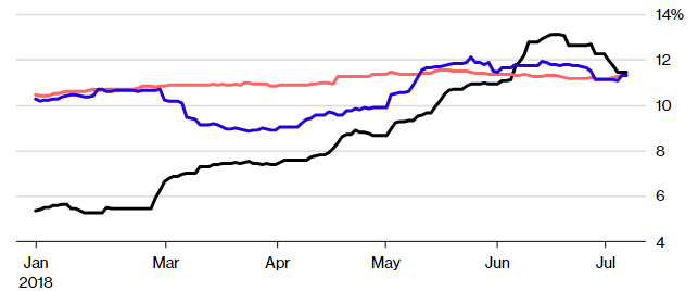 Chinese shares have been on a downward slide since hitting a more than two-year high in January, as investors worried about Beijing’s campaign to rein in leverage and its impact on liquidity, as well as corporate defaults, the slowing economy and an intensifying spat over trade and technology investment between China and the U.S.