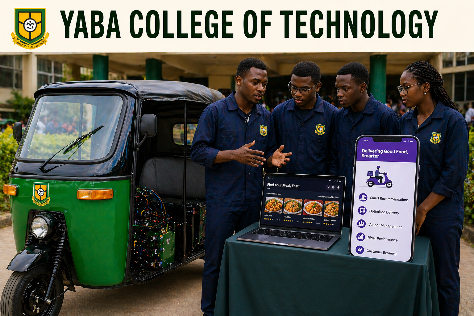 Students of Yaba College of Technology have developed two innovative solutions aimed at tackling some of Nigeria’s biggest everyday challenges transport, energy costs, and food delivery inefficiencies.